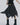 Jupe noire asymétrique à pois blancs, confectionnée dans un tissu extensible.