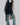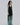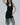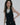 Elle présente un décolleté plongeant en U façon halter, orné d’œillets métalliques argentés.