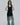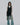 L’ourlet asymétrique à franges brutes, ponctué de billes métalliques, crée une silhouette unique.