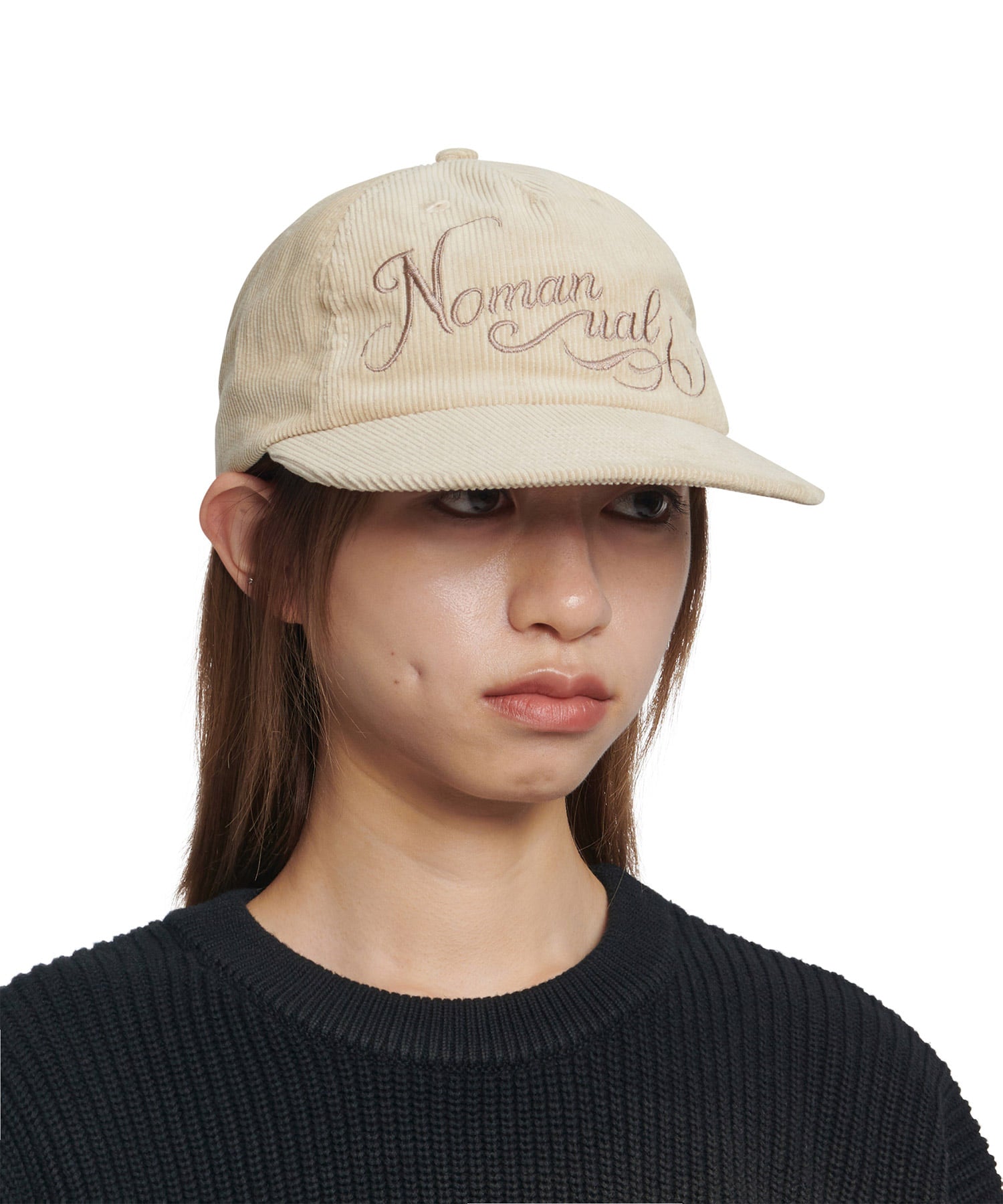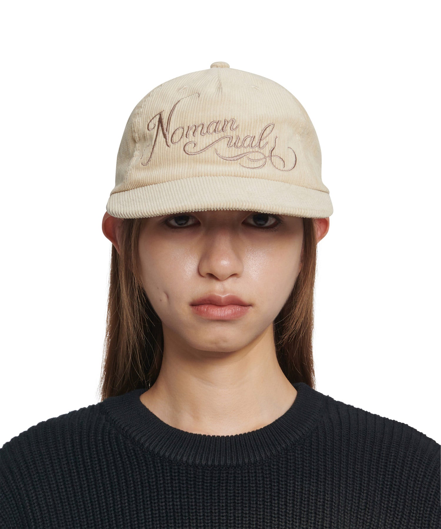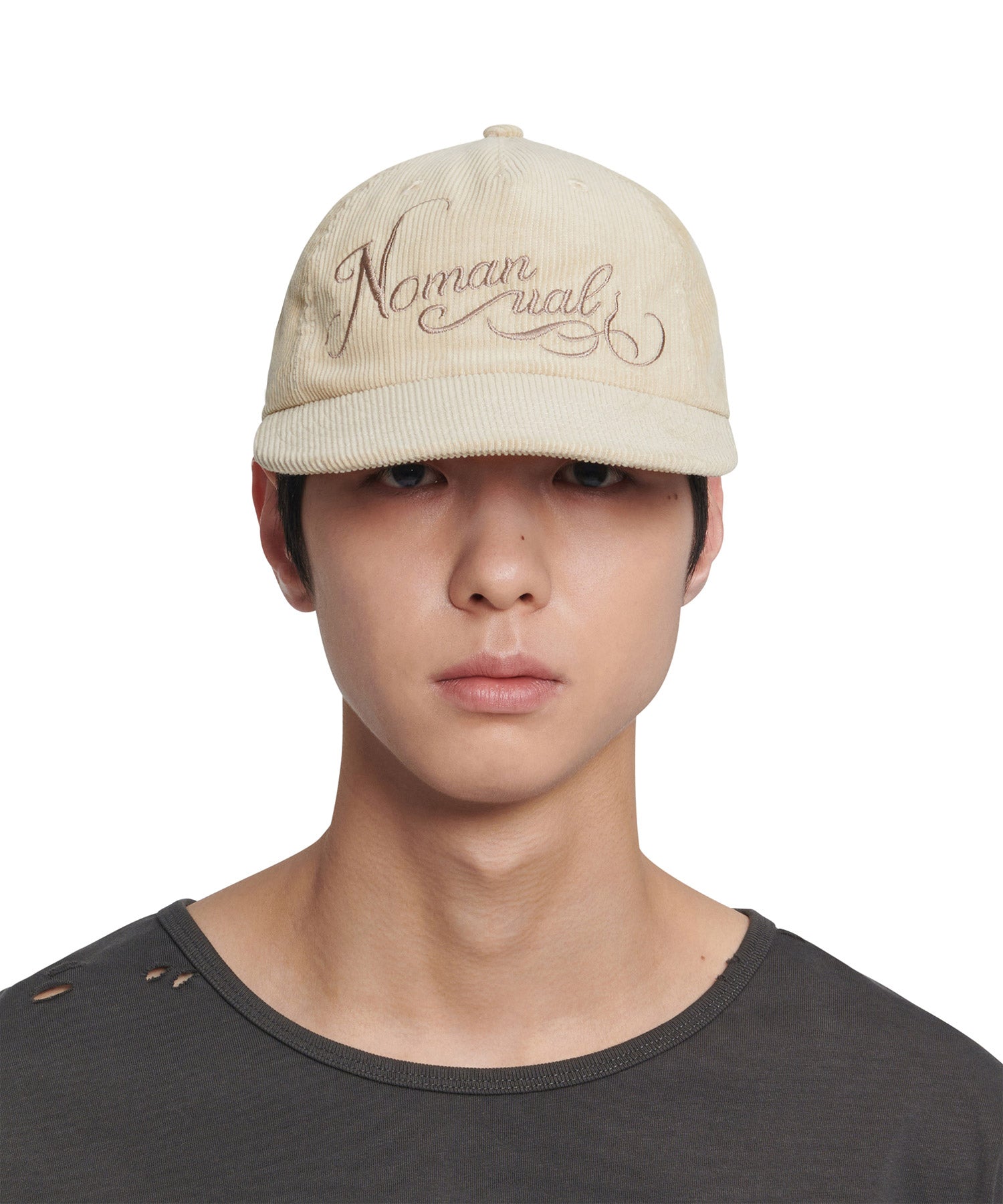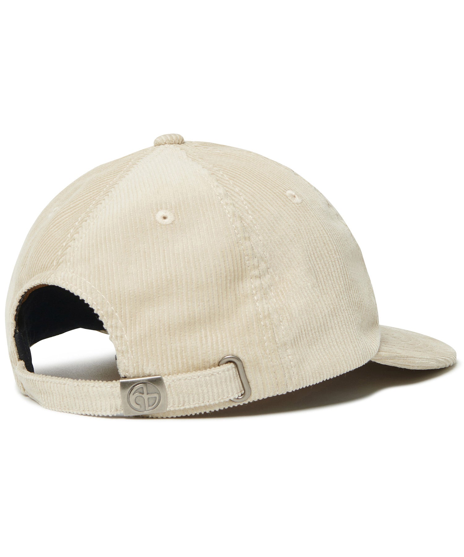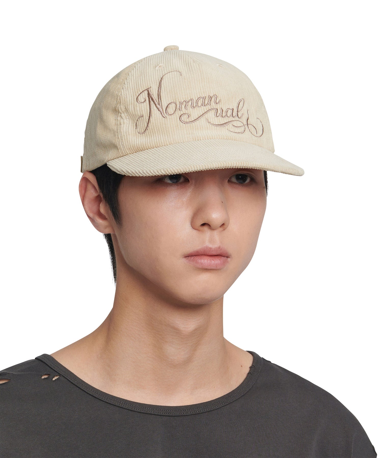 Casquette en velours côtelé ivoire, offrant une texture douce.