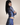 Chemisier en dentelle bleue avec une vague bleue qui rappelle les aurores, assortie avec la jupe Aurora Skirt.