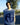 Gilet sans manches, large, en tricot bleu avec le symbole de la marque NO MANUAL tricoté
