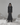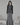 Jupe en denim à la coupe sirène de longueur maxi, de couleur grise anthracite avec des effets délavés. La jupe a des détails de fentes sur le devant au niveau des cuisses et à l'arrière vers le bas de la jupe, un bouton en métal et des détails de rivets, une fermeture et des poches déséquilibrées sur le devant.