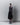Jupe grise anthracite évasée qui peut être portée de deux façons différentes; le haut du tablier peut être rabattu vers le bas pour créer une jupe ou remonté pour être porté comme une robe.