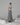 Jupe en denim à la coupe sirène de longueur maxi, de couleur grise claire avec des effets délavés. La jupe a des détails de fentes sur le devant au niveau des cuisses et à l'arrière vers le bas de la jupe, un bouton en métal et des détails de rivets, une fermeture et des poches déséquilibrées sur le devant.