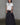 Jupe longue noire à volants fabriquée en tissu coton léger 40 fils. Elle est dotée d'une ceinture large en tissu côtelé, de ceintures avec anneau en O à l'avant et à l'arrière, ainsi que d'un lien en corde pour un effet détaillé. Chaque niveau de volants est accentué par une bande d'œillets, créant un look texturé lorsqu'elle est portée.