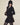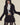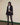 Cardigan noir à capuche, en maille texturée, avec finitions en fausse fourrure.