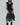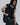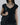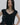 Blouse noire ajustée à fines rayures brodées, ornée de galons de dentelle le long de l’encolure et des lignes de poitrine pour une allure délicate et structurée.