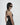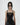 Débardeur de couleur noire avec un soutien-gorge intégré, recouvert d'un tissu en maille transparent, des doubles bretelles croisées dans le dos et un détail d'impression du logo OJOS sur le devant.