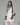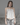 Robe ballon de couleur beige, superposée en tissu en maille, avec un détail de broderie du logo de la marque OJOS sur la gauche et des découpes brutes.