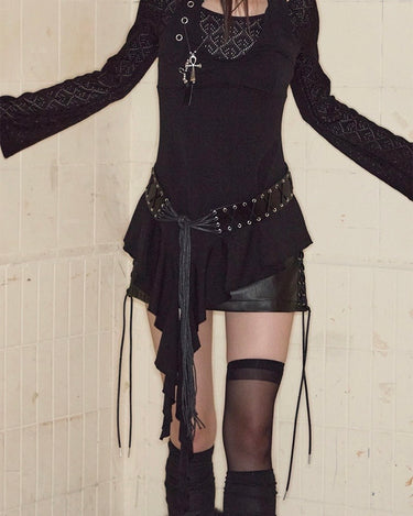 Belted Drop Ruffle Top - BLACK