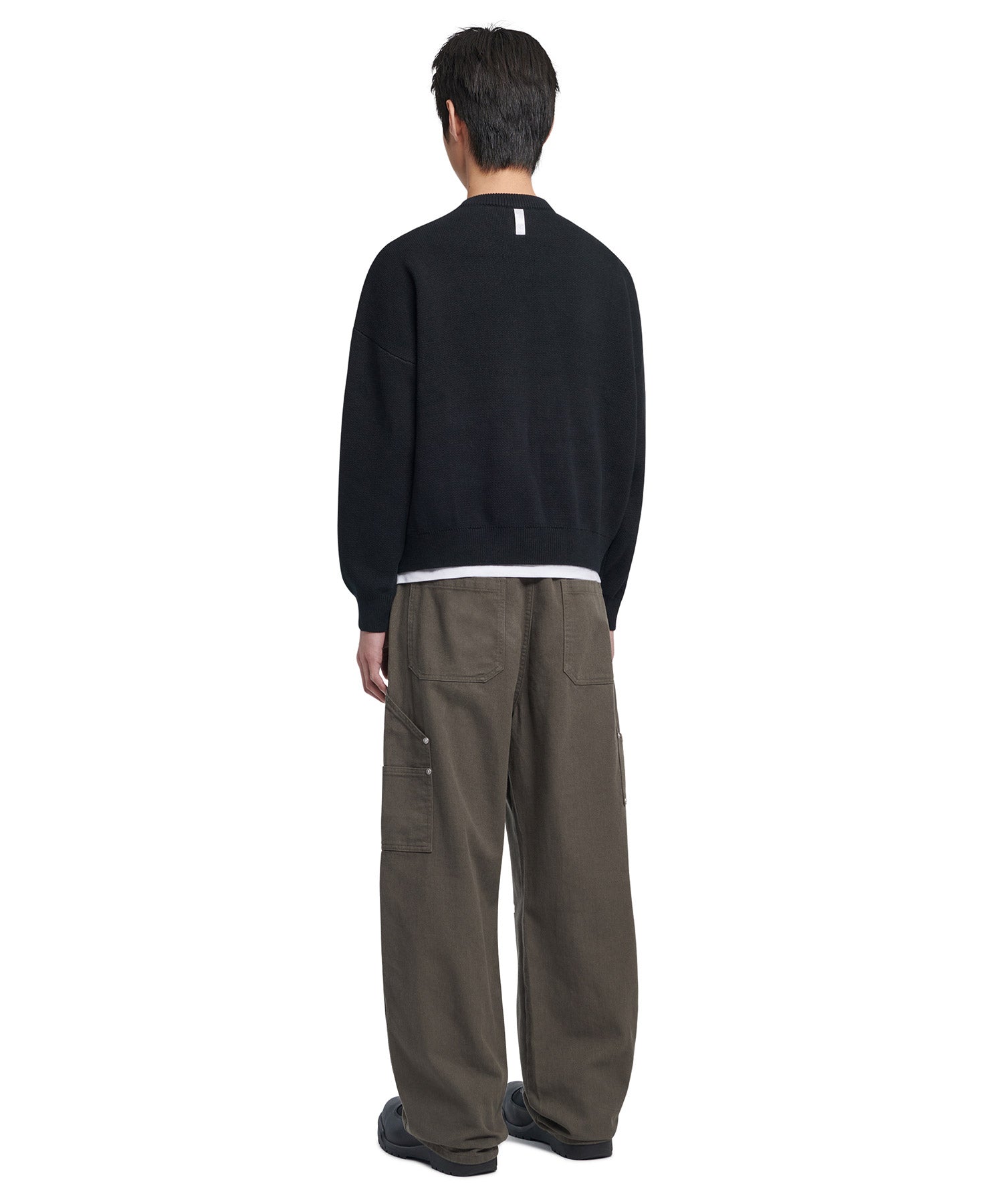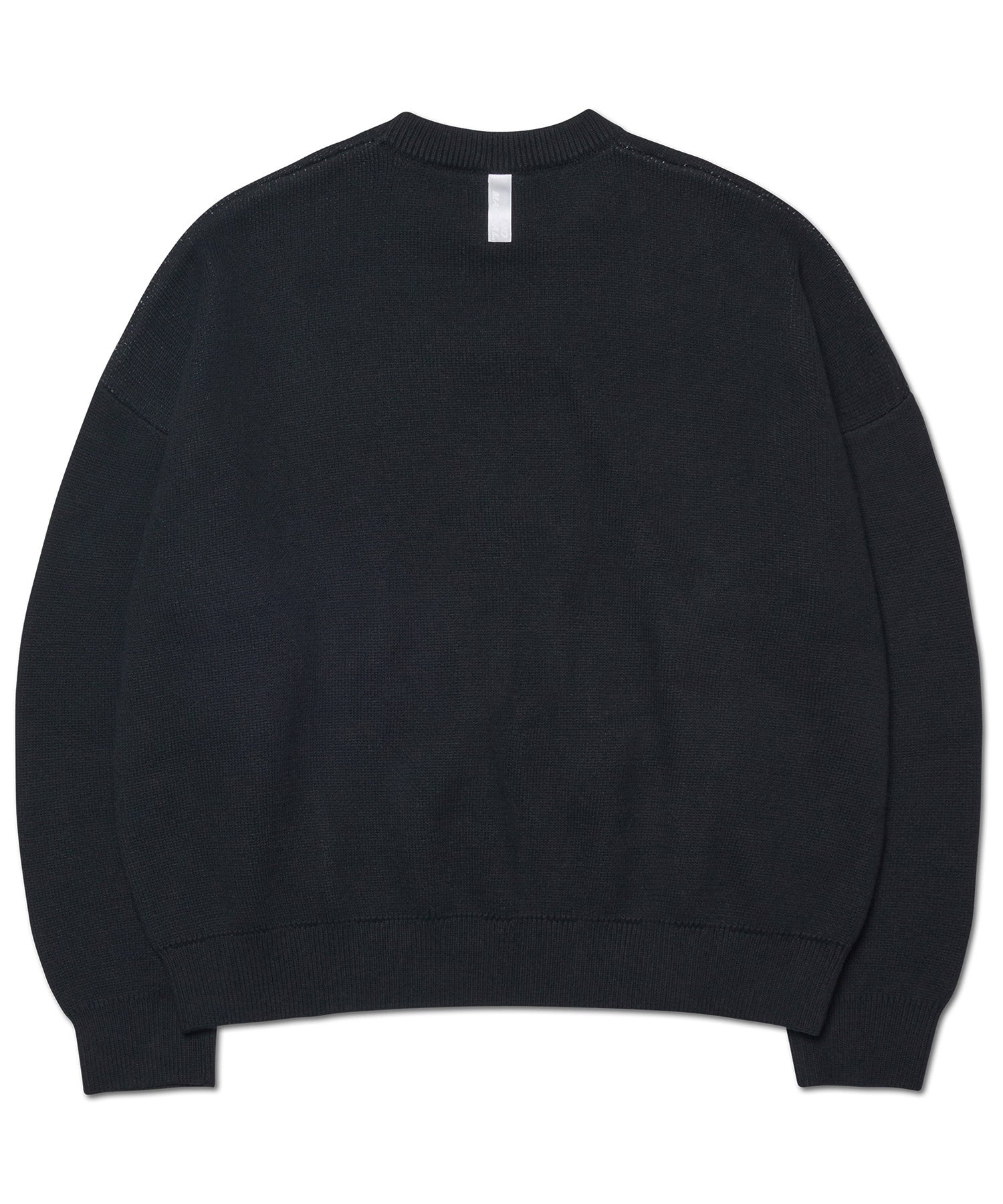 La coupe est ample et structurée, avec des épaules tombantes et un volume généreux qui assure un porté décontracté tout en conservant une silhouette affirmée. La maille dense apporte une bonne tenue et une sensation de chaleur, faisant de ce pull une pièce à la fois fonctionnelle et esthétique.