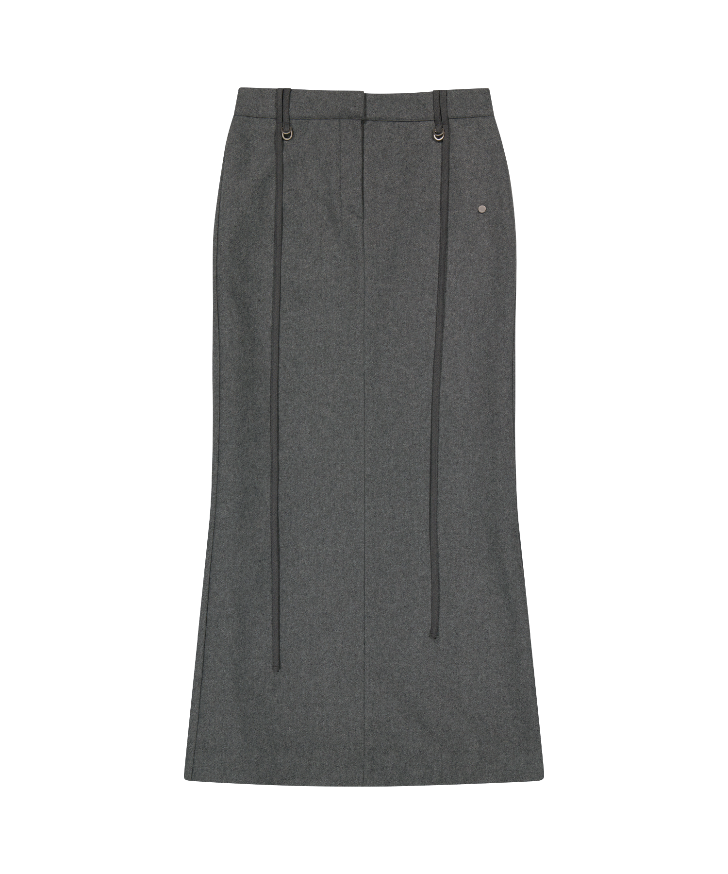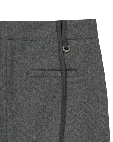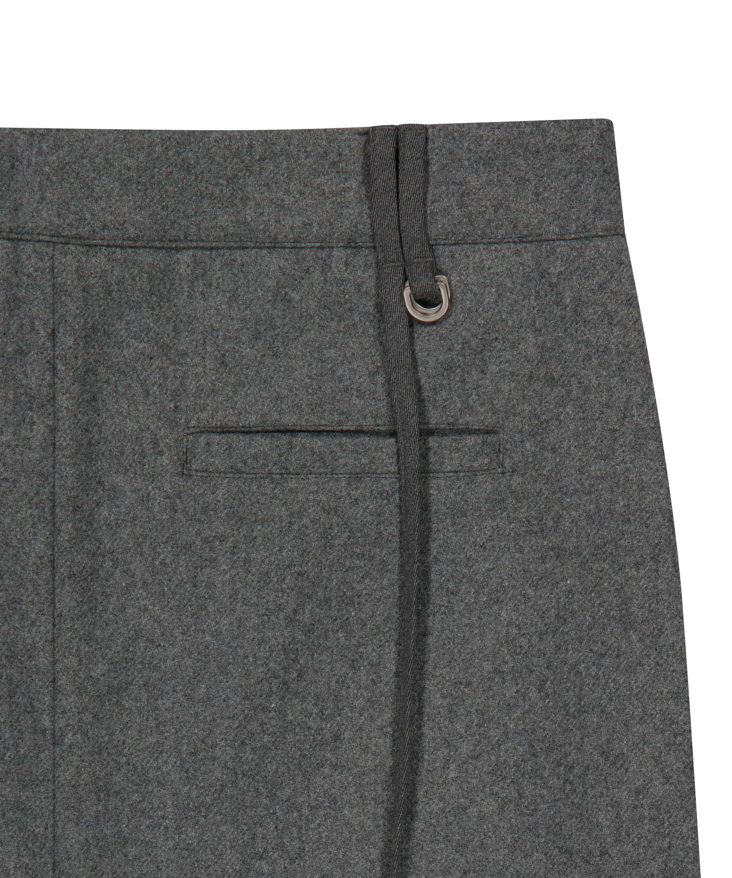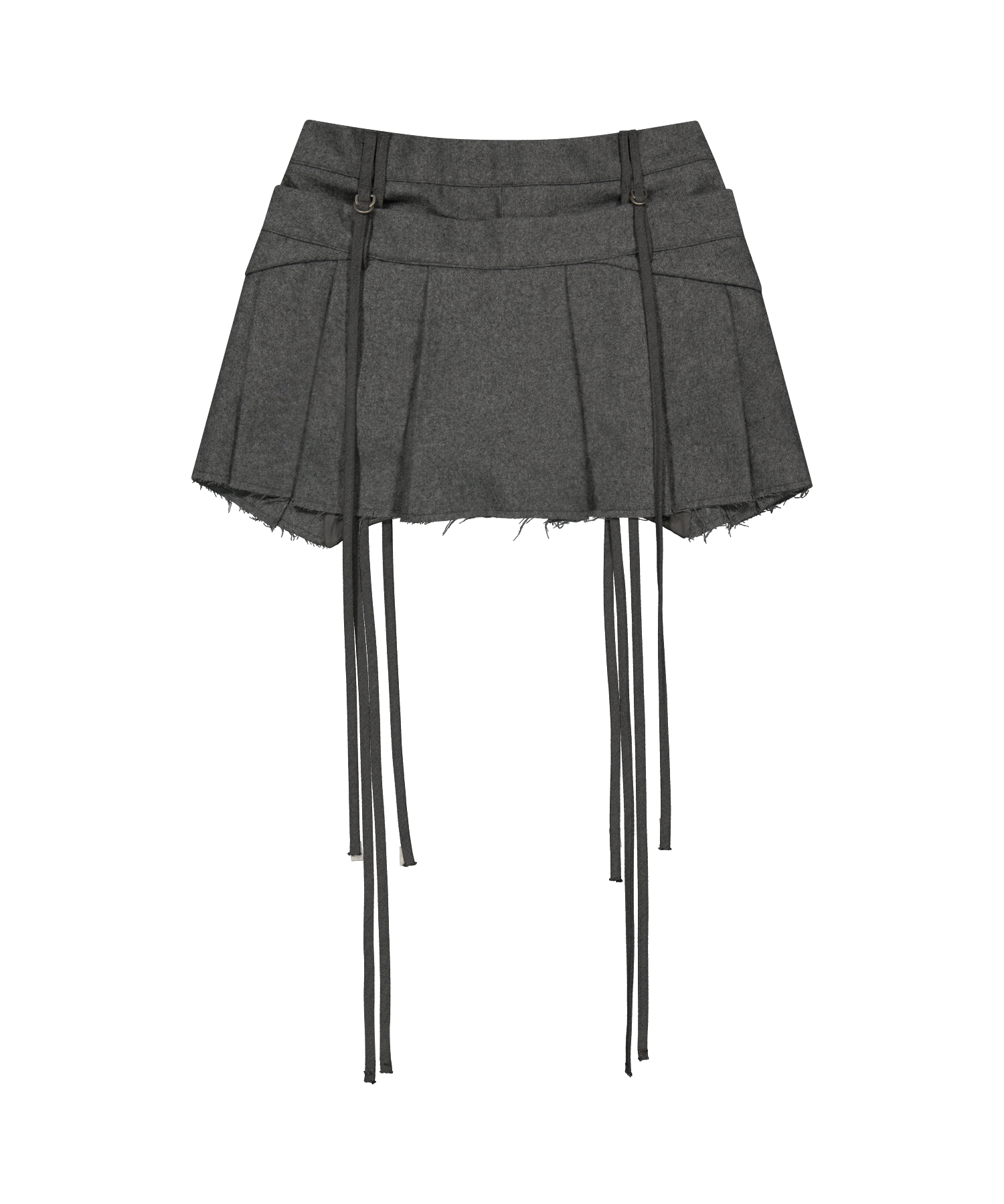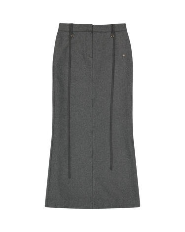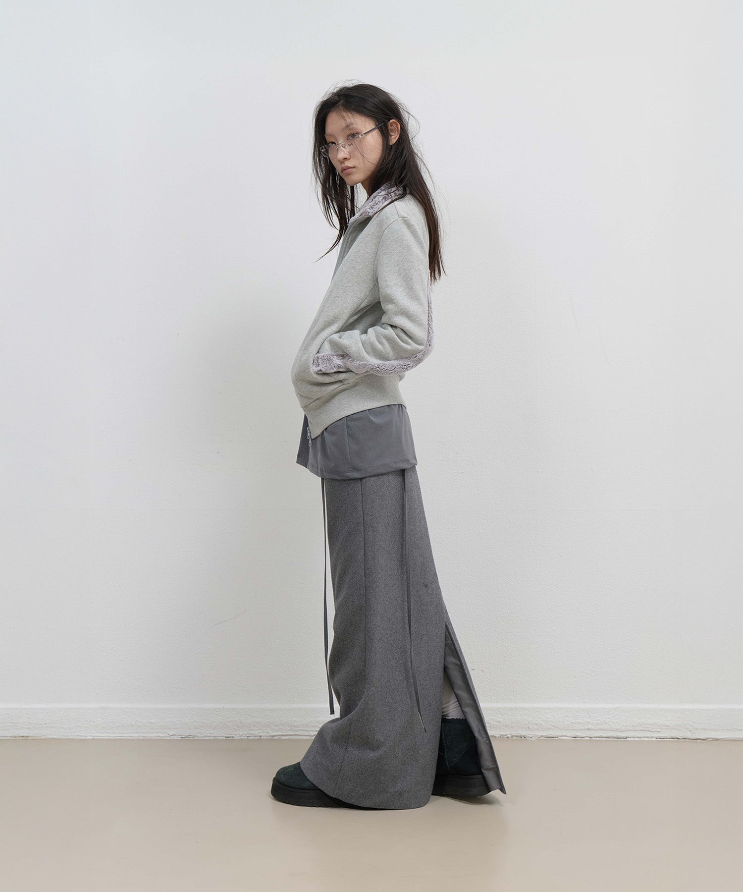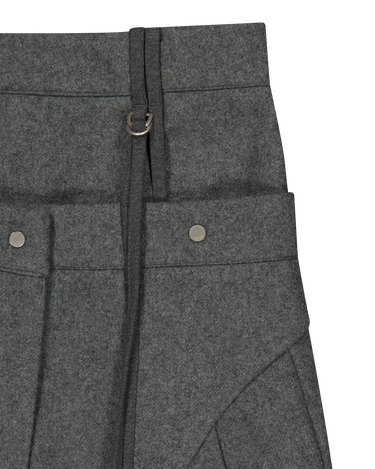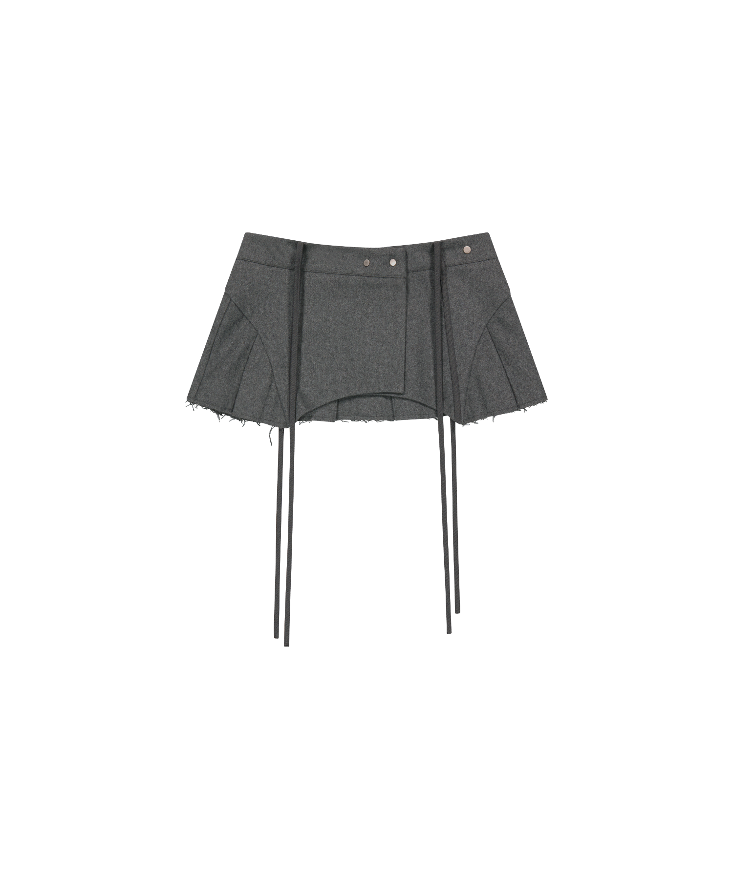 Set composed of a micro pleated mini skirt and a long mermaid-cut skirt, both in grey wool, offering warmth and a refined texture.
