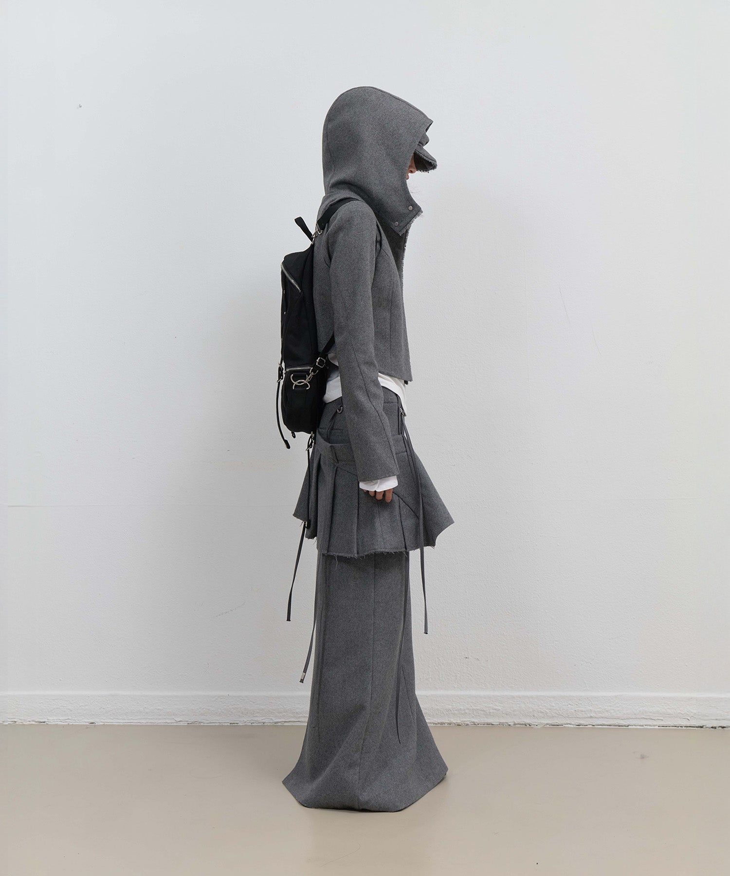 Can be worn as a set with the Layered Bolero Wool Jacket (images 3, 4, 5, and 7) or paired with the Micro Wool Shorts (images 13 and 14) from the same collection.