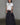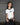 White ringer T-shirt, made of 20-thread cotton fabric, with a black print inspired by roses and thorns. This model is distinguished by its contrasting colors on the collar and sleeves, as well as a contrasting band on the hem. Thanks to this band, the T-shirt can be elevated to create a layered impression, like a tank top worn over a cropped T-shirt.