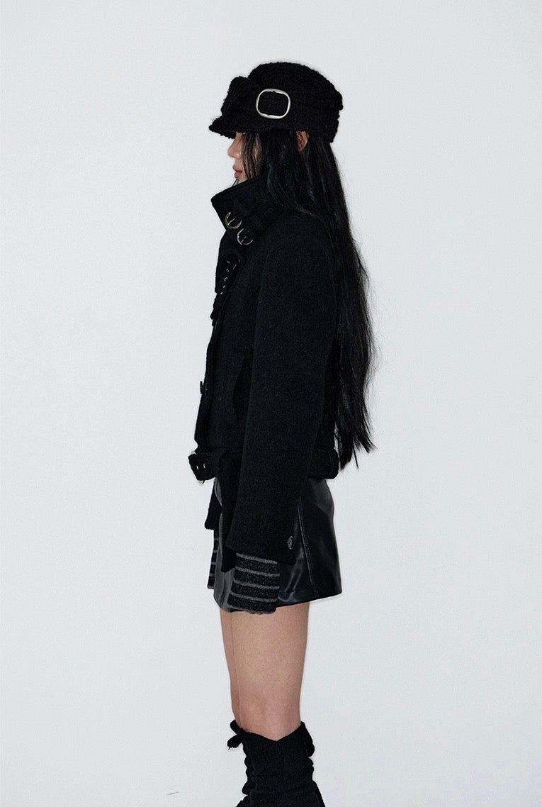 The cap is decorated with a square buckle and two studs, adding a refined detail.