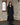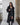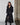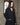 The coat includes a matching neck choker, made from the same fabric as the coat, adorned with chain and stud detailing on one side, adding a distinctive, slightly grunge touch. The coat also features 10 mm integrated shoulder pads, five buttons placed at the center front to further emphasize the cinched waist, and 9 mm silver studs on the coat’s pockets.